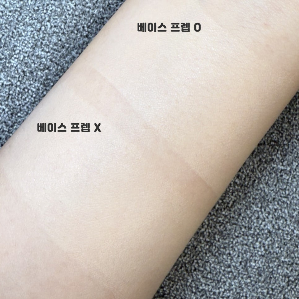 베이스 프렙을 안 바른 쪽은 쿠션이 뜨고 뭉쳤어요ㅠ