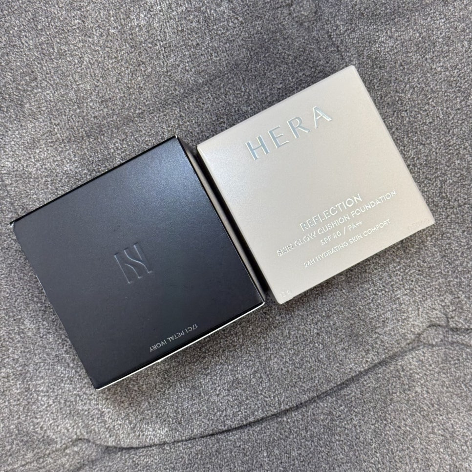 왼쪽이 리플렉션 쿠션 / 오른쪽이 헤라 블랙쿠션